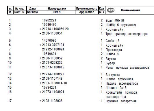 lbvfhbr, с педали он просто сковыривается отвёрткой, пластиковая петелька троса держится за пимпочку на педали. А трос я спрашивал "на инжекторную классику". Продавец был не уверен и дал мне его под честное слово померить на машине. Мерил не снимая старый, приблизительно.