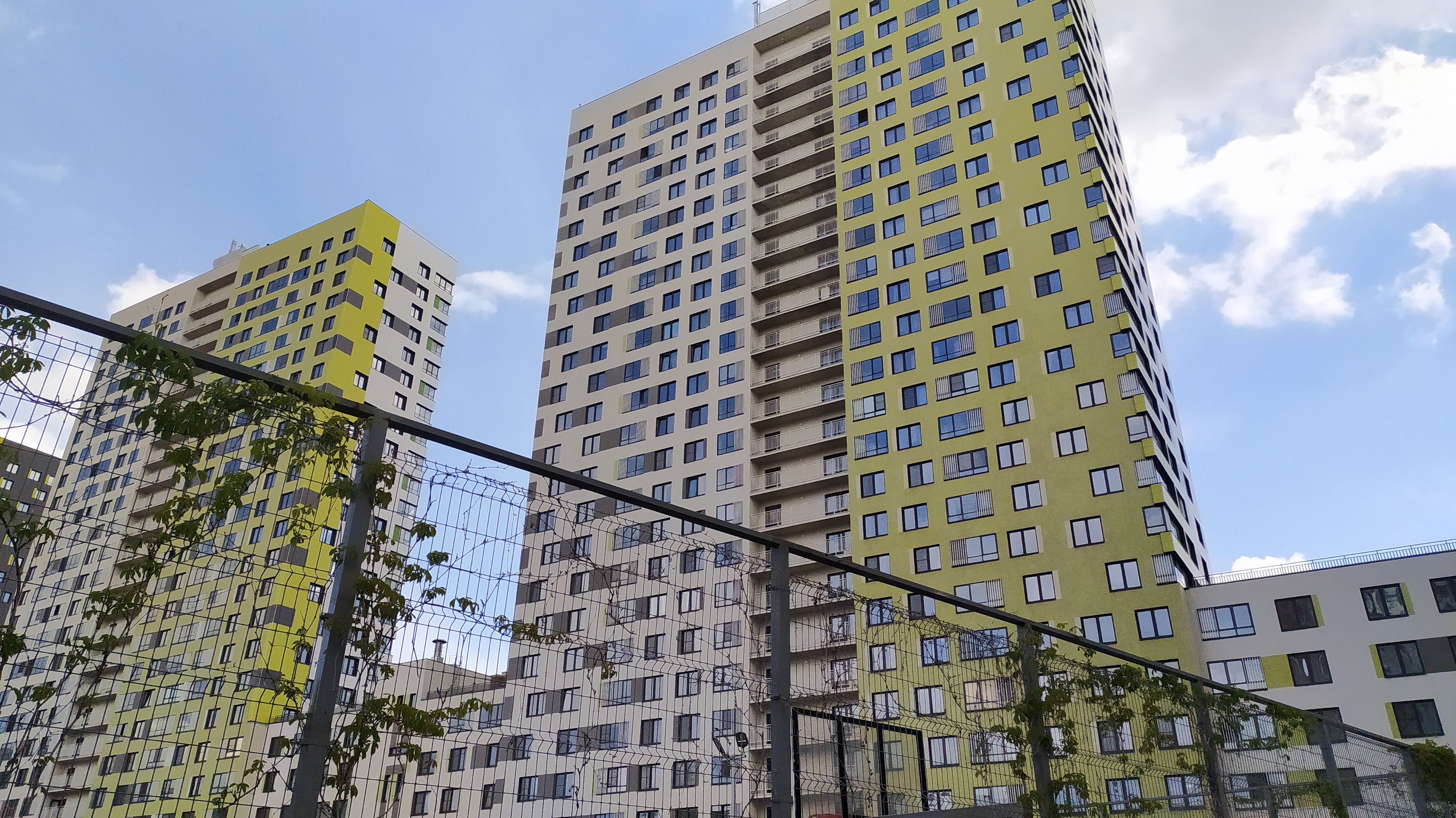 Эти башни-близнецы примыкают к двум пятиэтажным домам. Внутри — обычные жилые квартиры.