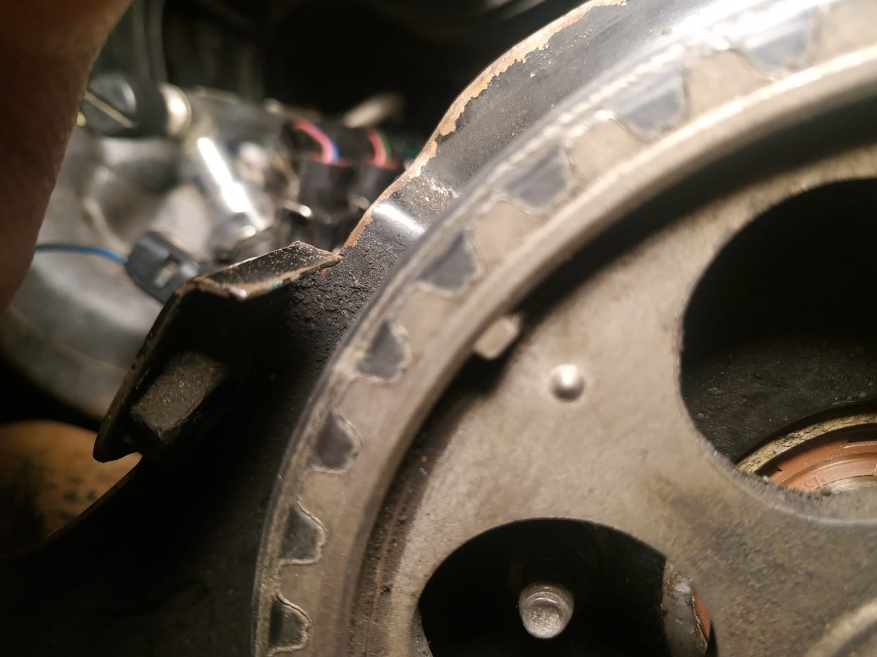 Возник вопрос. Менял скрипучий натяжной ролик и сам ремень ГРМ. Всё как бы путём, всё работает. А вот почему "как бы". Сейчас заряжу фотки меток шестерён и маховика. Вот так было изначально. Я так же и собрал. Теперь мучаюсь - может надо было всё-таки совместить метки на шестерне РВ? И чем бы это обернулось.
