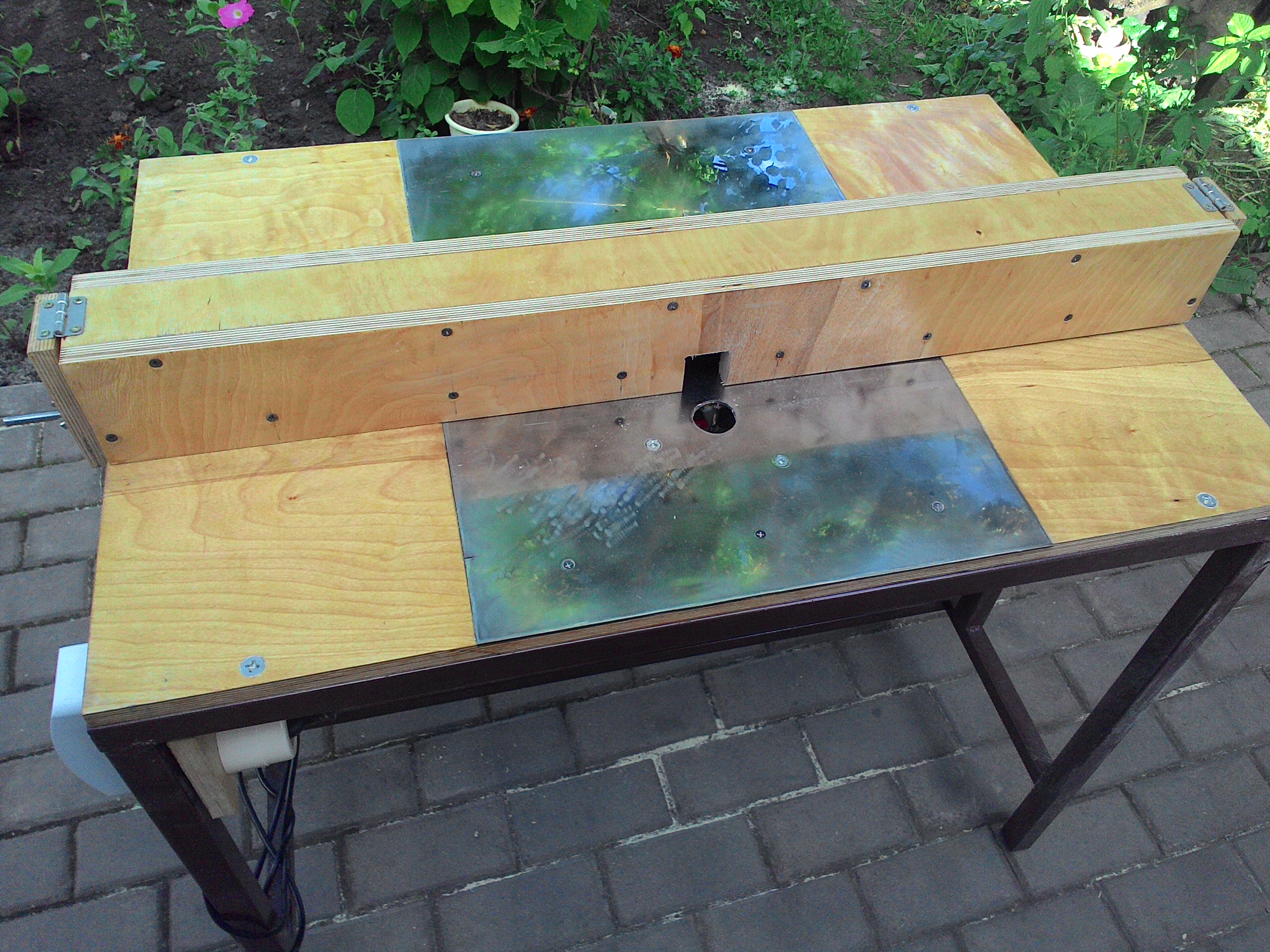 Закончил столик. В столешнице нержавейка тройка. Вылет диска можно регулировать. Испытания прошли успешноzalex писал(а):В планах соорудить под нее и купленный ранее фрезер стол для дополнительного стационарного использования.