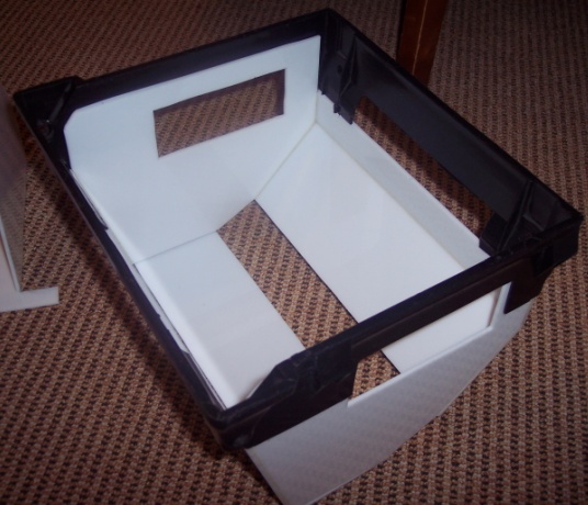 Вот как-то так. На картонном макете видно вырезы под отливы для металлических скобок-защелок печки. Макет делался снаружи. На пластике их нет - пластик будет вставлен внутрь. Ну и перегородку с окном под сопло улитки еще вообще не выкроил.