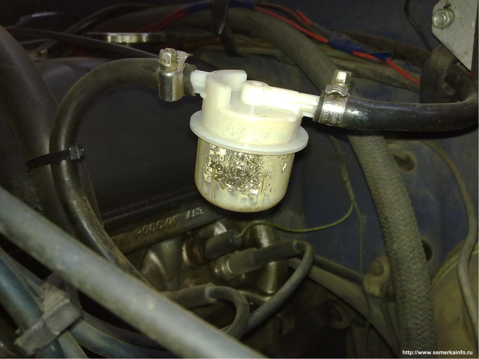 На фото - результат незначительного понижения температуры за бортом (до +5 градусов) и не переключения заслонки в воздушном фильтре с положения "лето" (холодный воздух) в положение "зима" (подогретый воздух). Фильтр был абсолютно чистый, и за 3 минуты прогрева пришел в такое состояние. До этого температура была даже ночами не ниже +10 град, и такого творога в фильтре не было, был лишь легкий маслянистый налет.