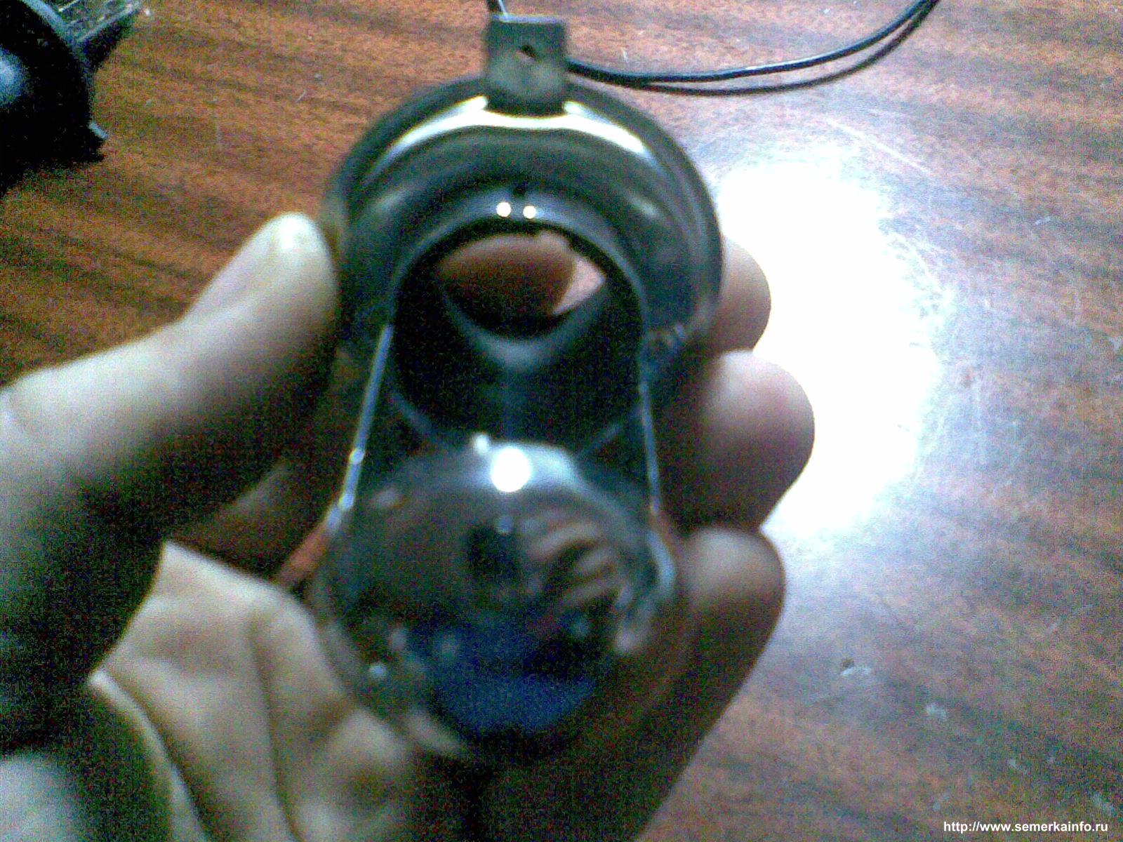 Берем цокольную пластину от биксенона, накладываем на цоколь новой лампы и шилом отмечаем положение отверстий для крепления колпачка.