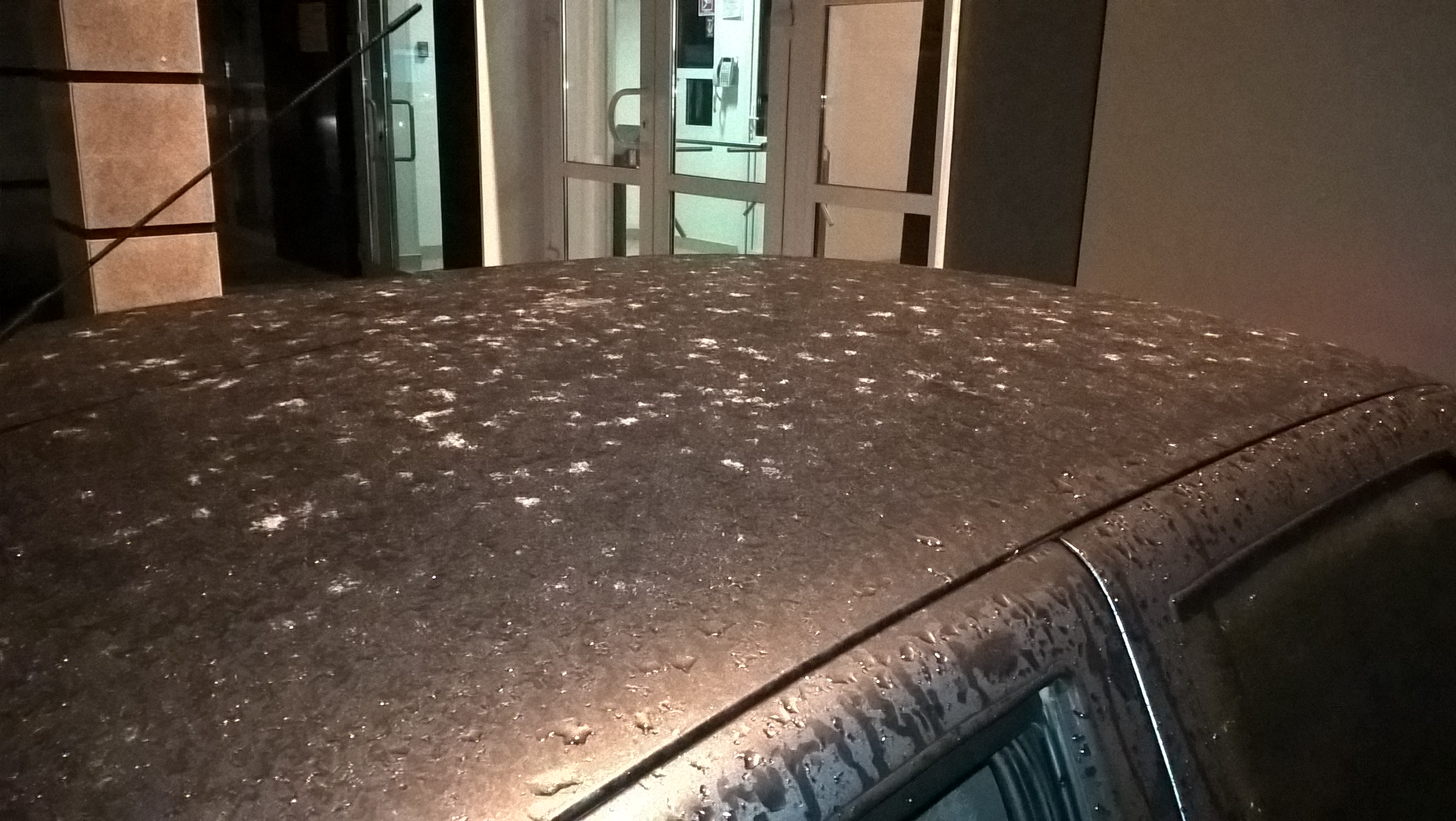 Это не вода, а замерзшие капли. Все, после работы тихонько, не торопясь ползу до дома и перекидываю колеса.