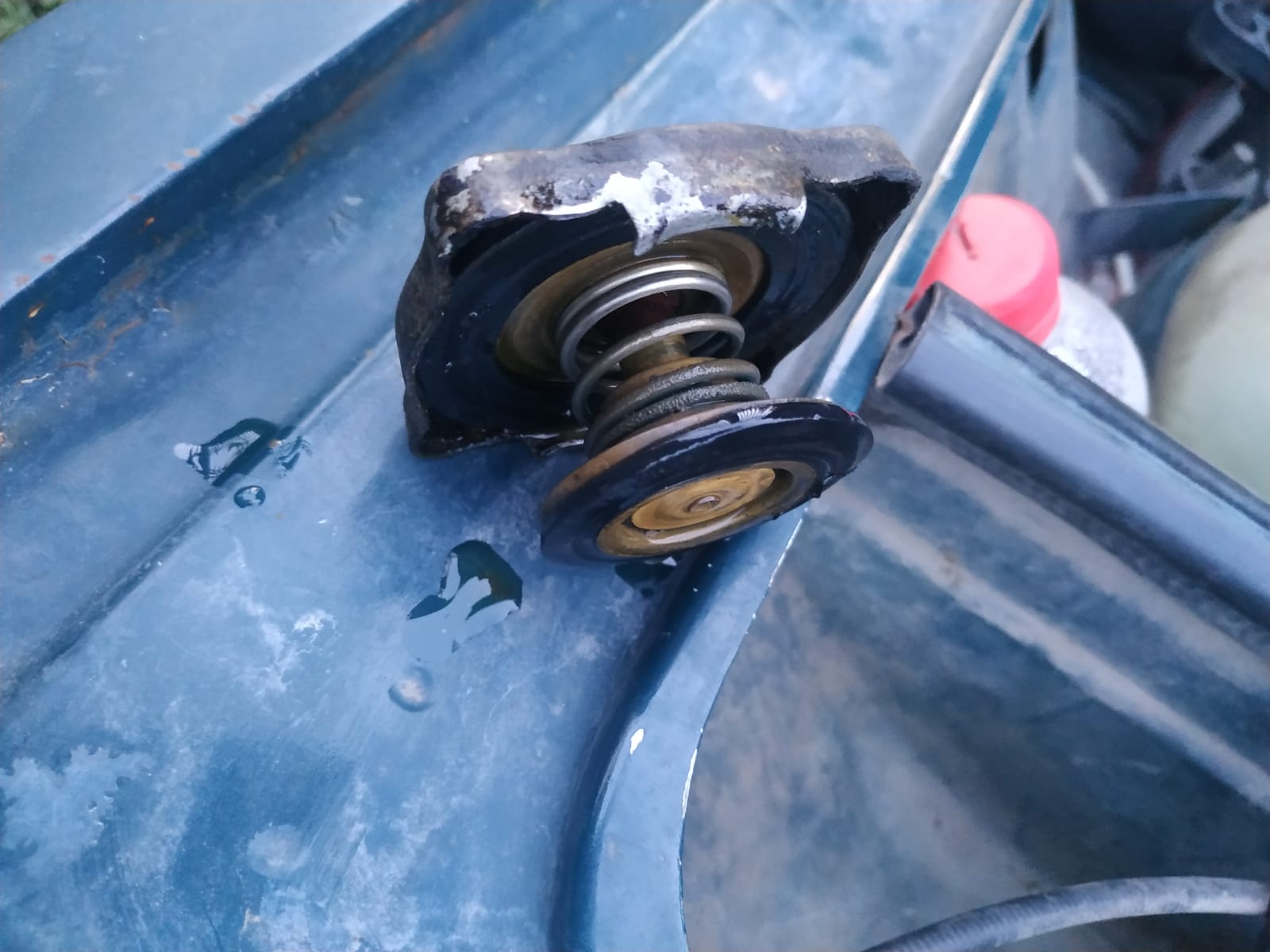 Нет, там латунная, на которой по периметру идет резиновый уплотнитель. Это собственно и есть пробка, запирающая горловину радиатора. Витые пружины - это к клапанам.