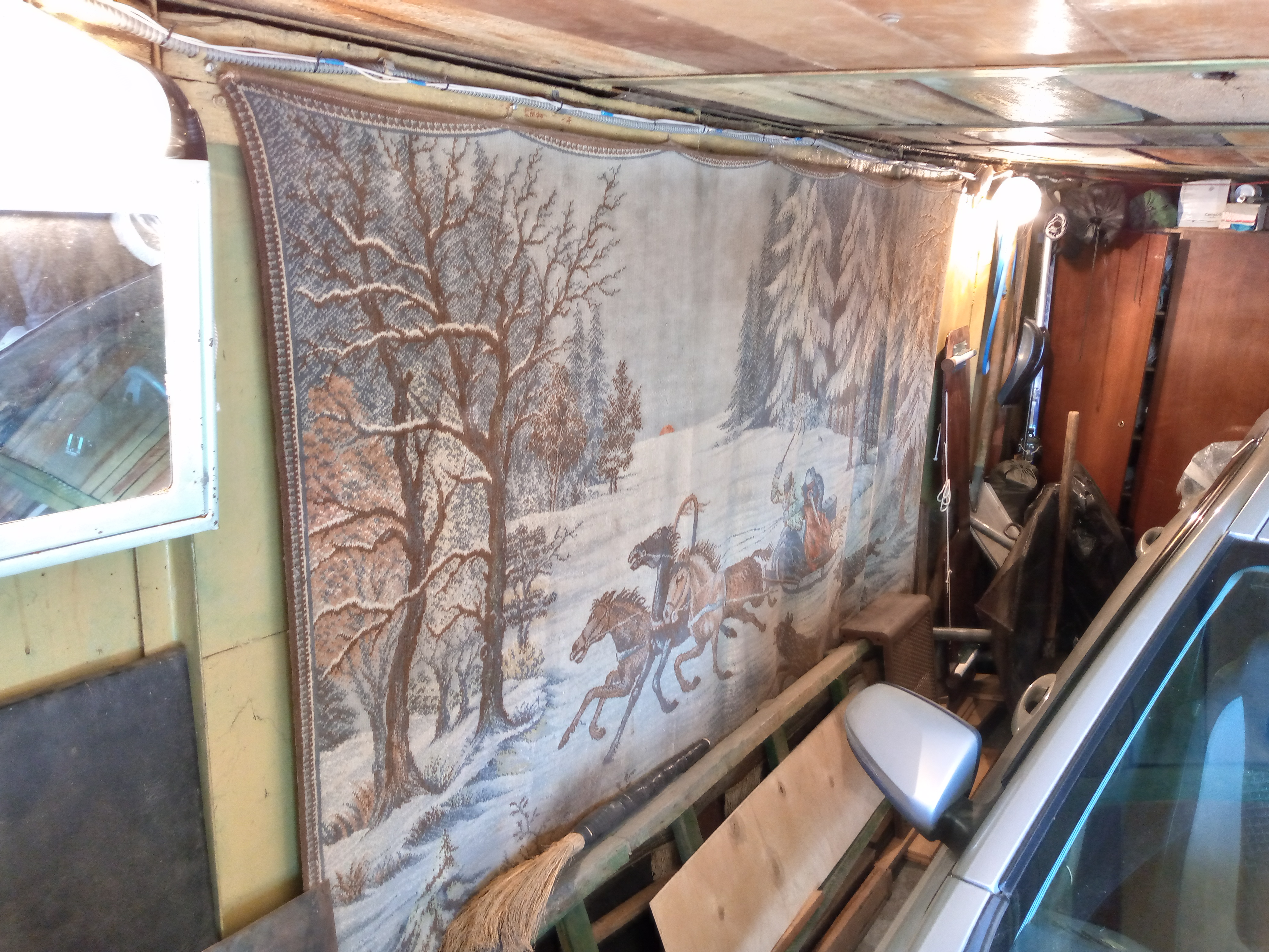 Просили ковёр- пожалуйста! Правда, он немного завален хламом (надо таки тоже порядок навести) и машина мешала... Ну, как-то так: