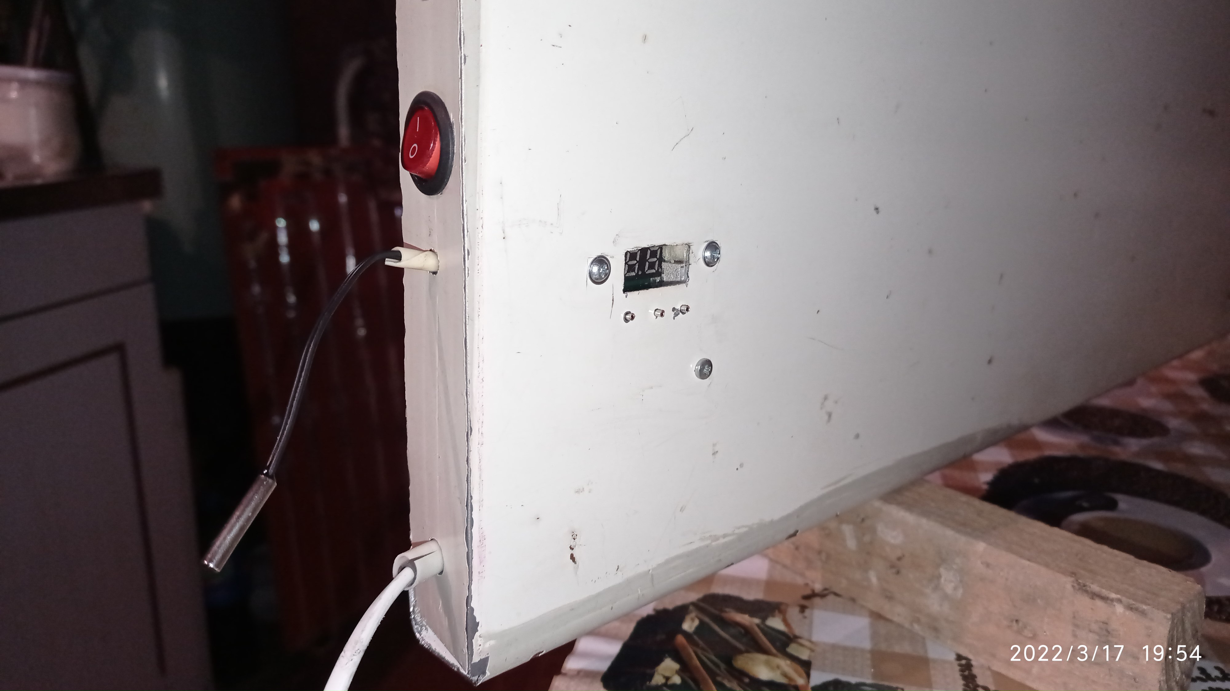 Оставил на ночь с 9 вечера. И вот утром в 5-30 разбудила сирена. Пошёл проверять. И удивился! На батаоее те же 8.5 градусов, а термометр выше показует 6.5 и влагу 99%. Тсююю. Шо-оно за 9 часов не смогло нагреть кубик 3*3*3. . . Странно. Ну предположим ему время нужно. Посмотрим. . .
