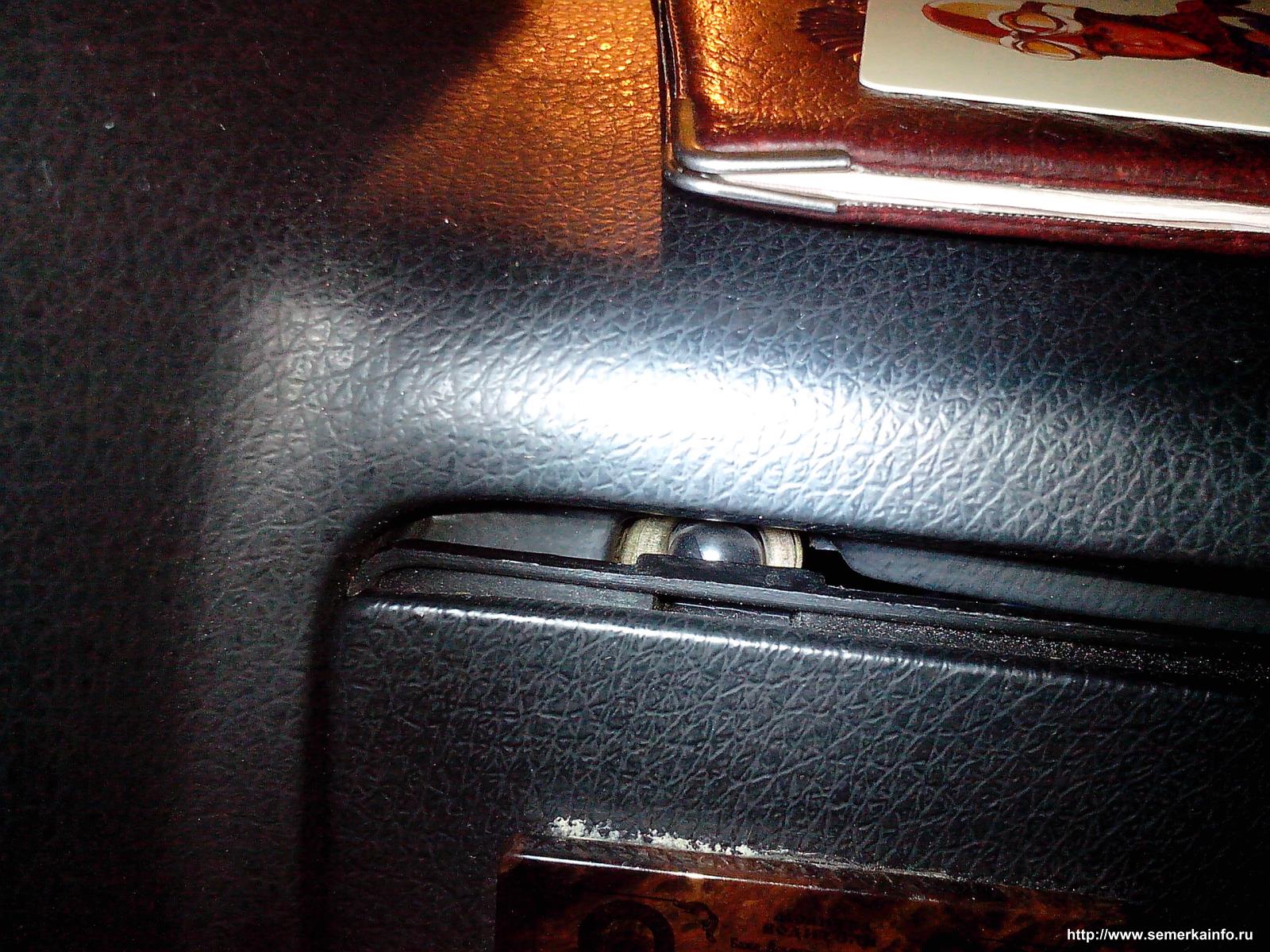 5) Стал разбирать бардачек. У меня через щел видно как лампочка постоянного внутри горит. Достало. левый край не до конца закрывается.