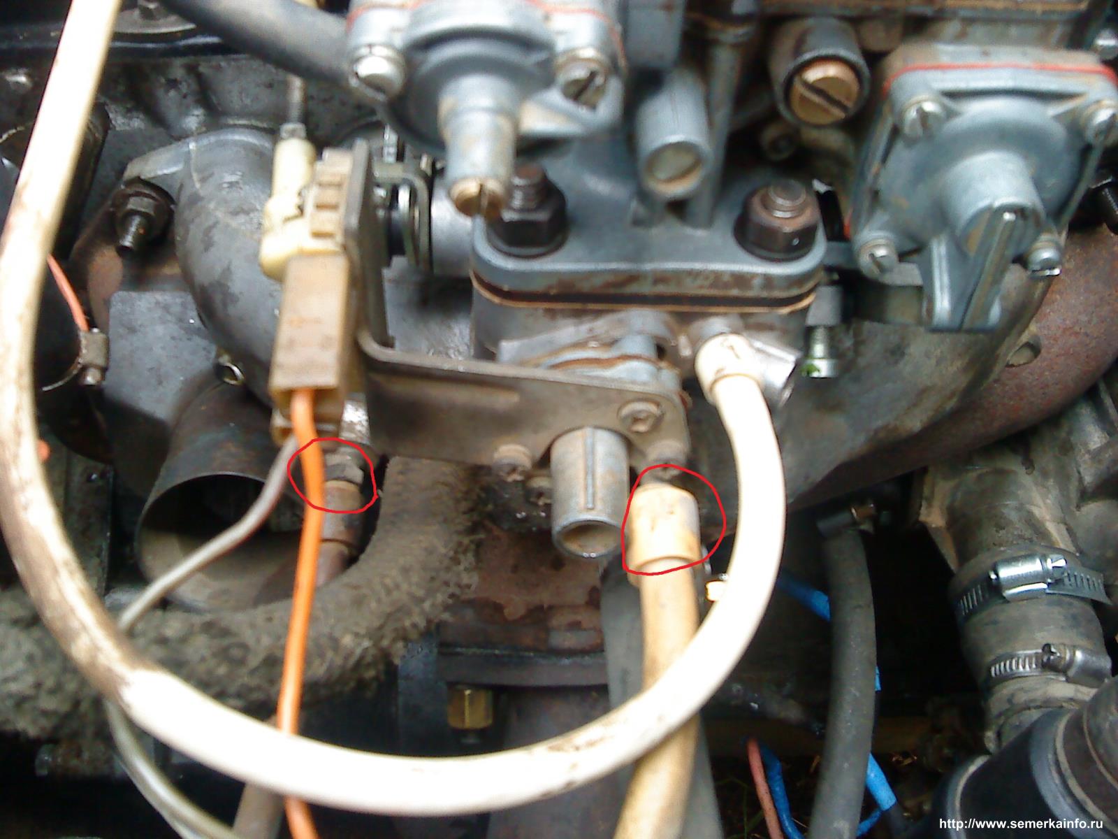 Если ты напрямую соединял вот эти два места куском целого шланга, и хх не было, то единственно в чем могла быть проблема: диафрагма экономайзера (пропускала воздух, либо залипла).