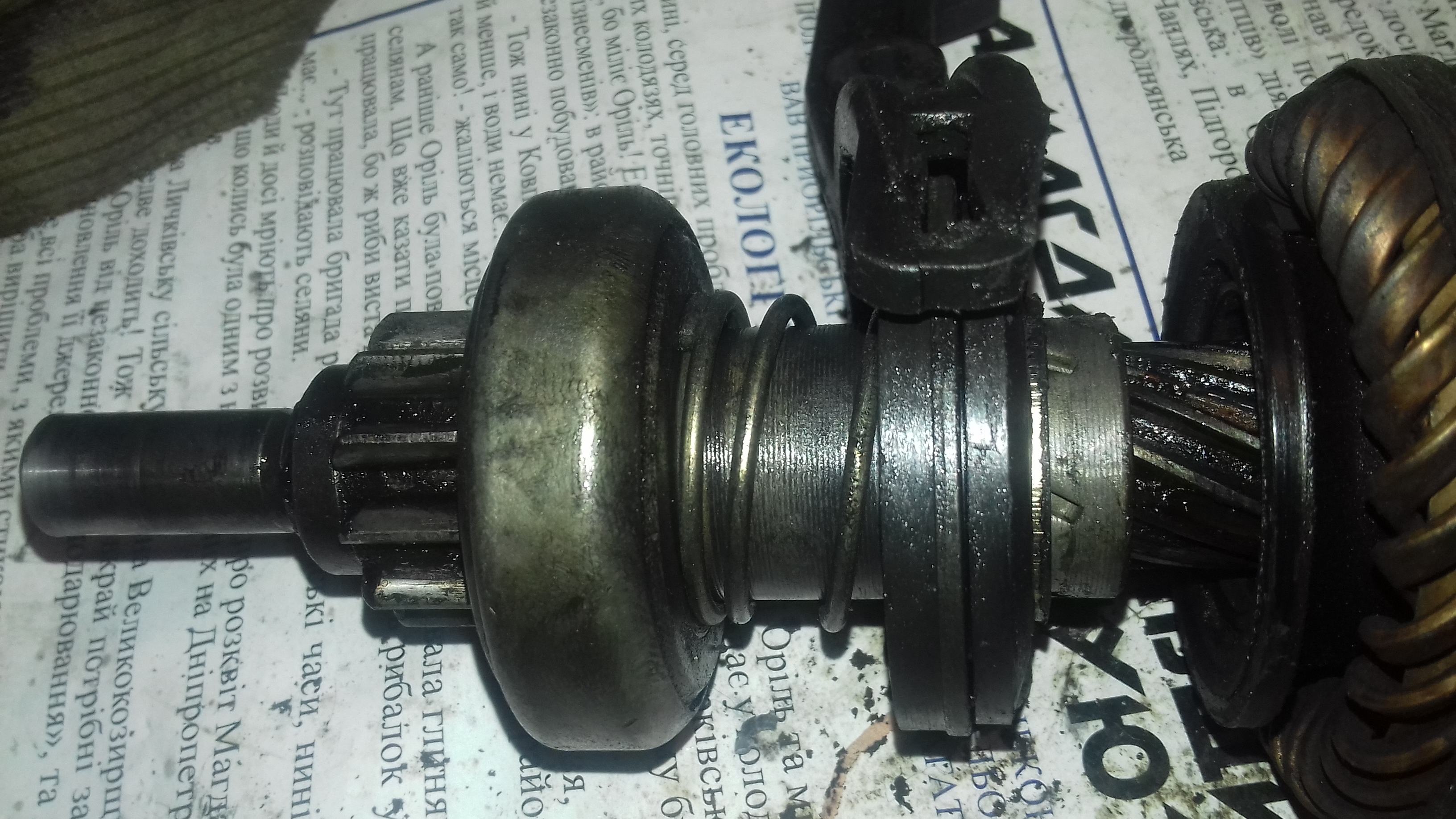 Либо стартер включается раньше времени. Когда втяг ещё не выскочило полностью. В снятом виде всё выкидуется. Но видно шо выкинулось и во время вращения какбы мм на 5 шестерня назад уходит. Мож смазка вала и всё. . .шоб бендикс не уходил назад при вращении