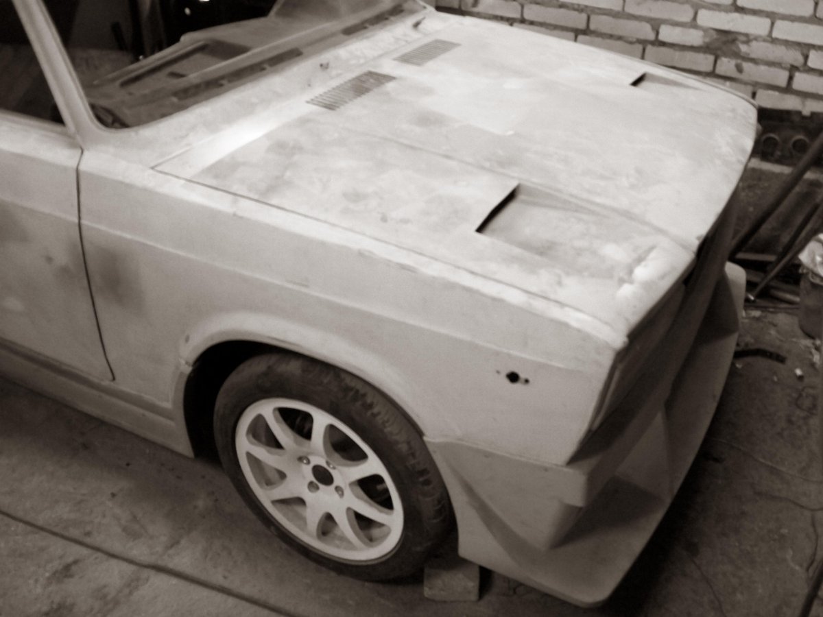 1. Продолжаются работы по кузову, он до сих пор не выведен к покраске. Не решены некоторые конструктивные его элементы. К покраске готовы только удлинённые двери, передние крылья и капот. То что сверху и сзади нужно ещё готовить. Обвес тоже не повешен.