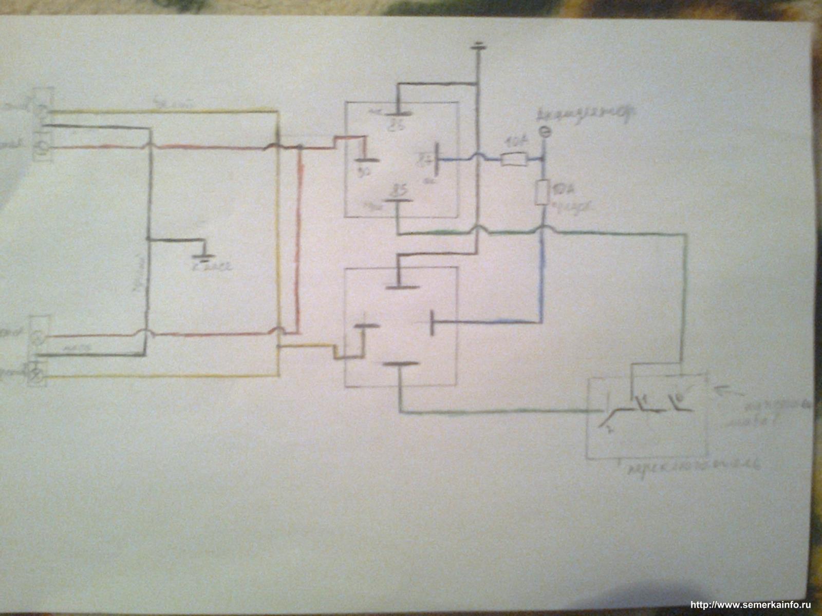 Купил противотуманки bigie(двохцветные) для моей 5-ки. Начитался литературы и давай вспоминать физику. Вот, к чему пришол. Вопрос: правельно ли я нарисовал схему?