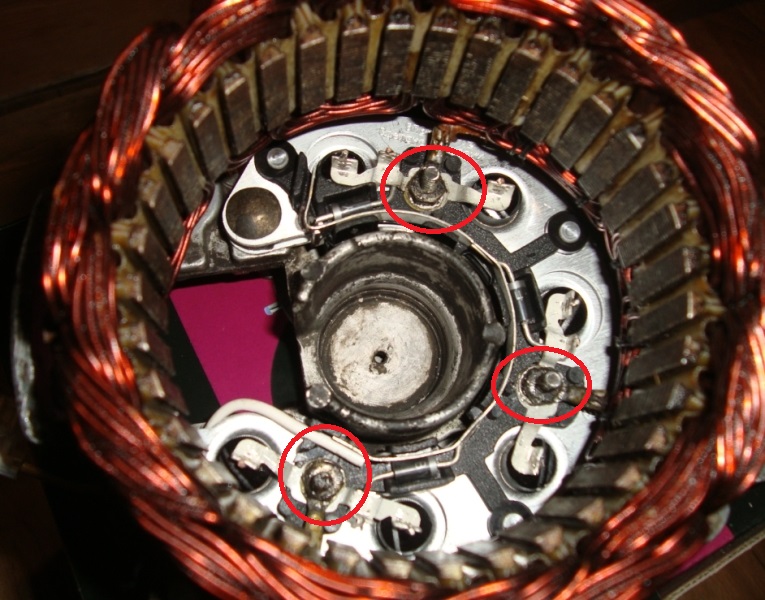 Задевали 2 болта из трех крепления вывода статора, укоротил чуток все болты, обратно собрал, стал затягивать посильнее, опять стали задевать якорь, видимо не достаточно укоротилblentrou писал(а):Если ток утечки около 4.5А, это похоже на замыкание или пробитый ДМ. Возможно, в собранном виде что-то всё-таки задевает. У меня была такая фигня с пробитым ДМ. А вообще, гена в таком случае и сгореть может.