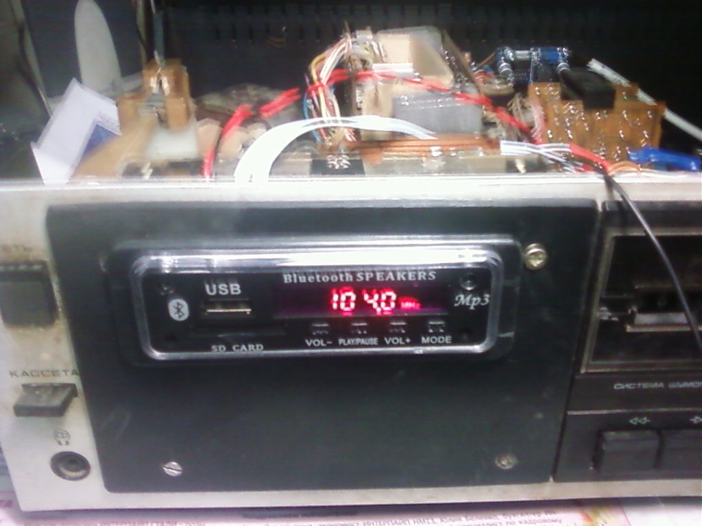Попробовал и такой вариант- на вход звукозаписи соединил коричневую магнитолку- через полчаса зарепело как и с мп3 модулем. Значит однозначно модуль не при чём. Будем копать далее. Поменял блок питания на модуль.