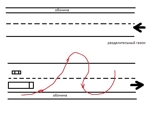 На встречной полосе некто на Приоре решил всех обогнать по обочине справа,при завершении обгона ,а там уже начинался отбойник,его вынесло на разделительный газон,затем еще немного потаскало по дороге,поднял при этом кучи пыли.Никого не зацепил,сам не перевернулся (хотя шансы были),после чего скрылся в неизвестном направлении.