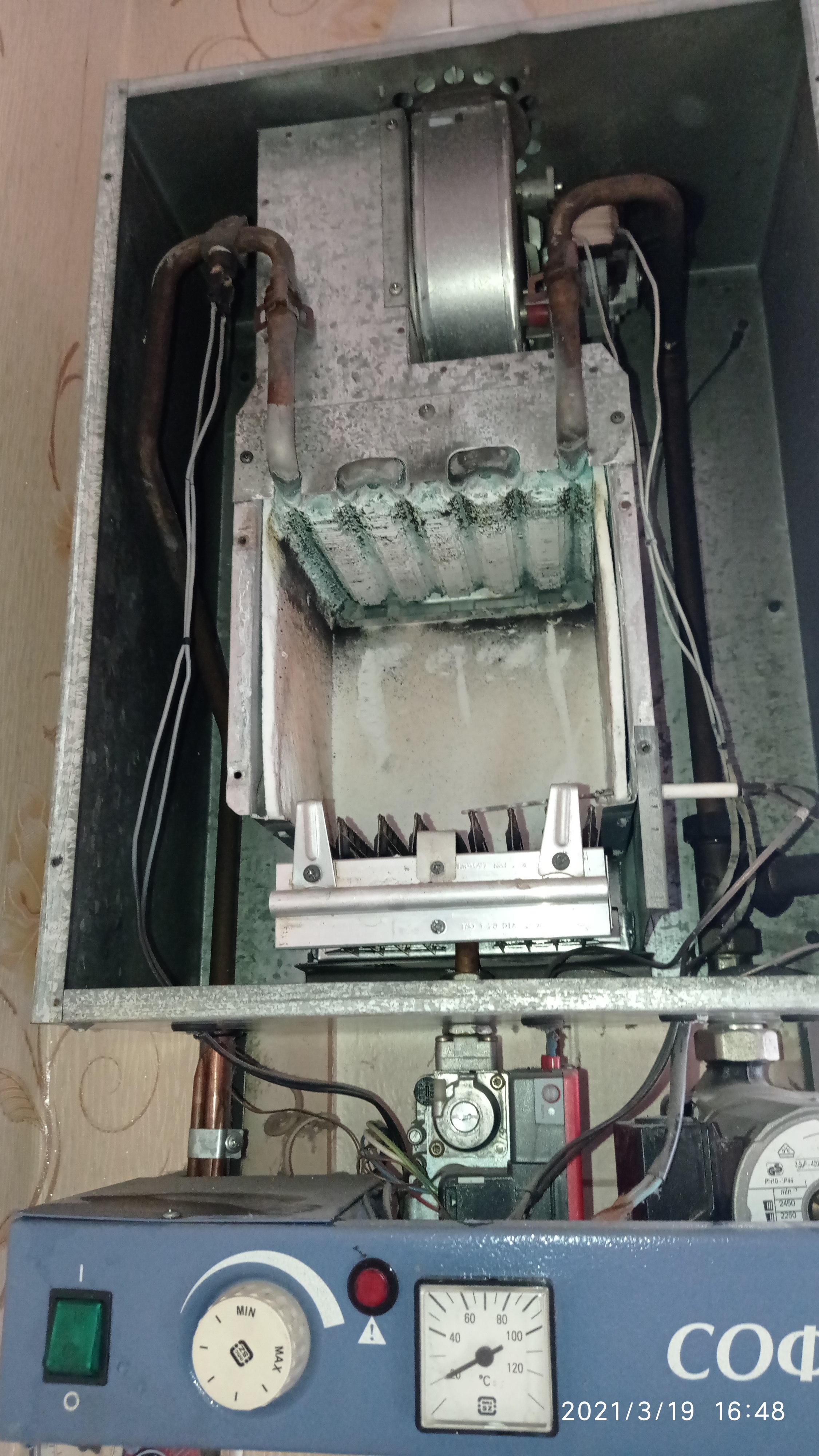 Вот он старичок. У нас в городе я покашо токо один такой колупал недавно. Всеголишь датчик ntc менял. Вот думаю предложу тому хлопцу этот котёл на запчасти!