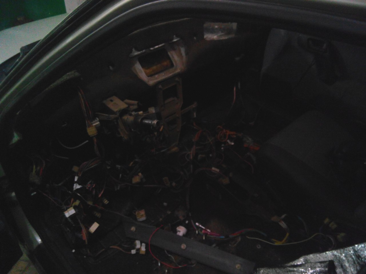 Люблю поездки в деревню, тут все гораздо продуктивнее, чем в городе. Вчера начал прокидывать проводку. Примерно прикинул длину проводов, обрезал, изолентой стяжки по длине сделал, и в путь. Успел только в водительскую дверь провести. Сегодня в деревне провел до пассажирской, все аккуратно соединил, термоусадкой в 2 слоя. В тоннеле выломал заглушку, посмотрел, померил мультяшкой, и подумал, а нафига все тянут +- и подсветку от прикуривателя, если гораздо удобнее и ближе к блоку ЭСП подключиться. Так и сделал, так же усадку в 2 слоя. Обогрев подключил в монтажный блок, к обогреву стекла. Брызнул хорошенько на стекла, включил обогрев, и меньше чем за 2 минуты стекла чистые. Теперь, когда освободились треугольники зеркал, можно и вторую пару высокочастотников забубенить в них, сказано - сделано