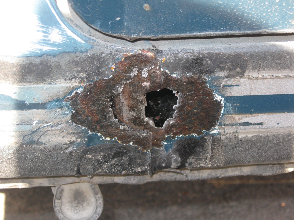 какая то странная дыра...первый раз такую гниль вижу....даже на конченом танке не было таких дыр....стык стойки и порогов сгнивал да...а чтоб так не видел---как будто мышка погрызла