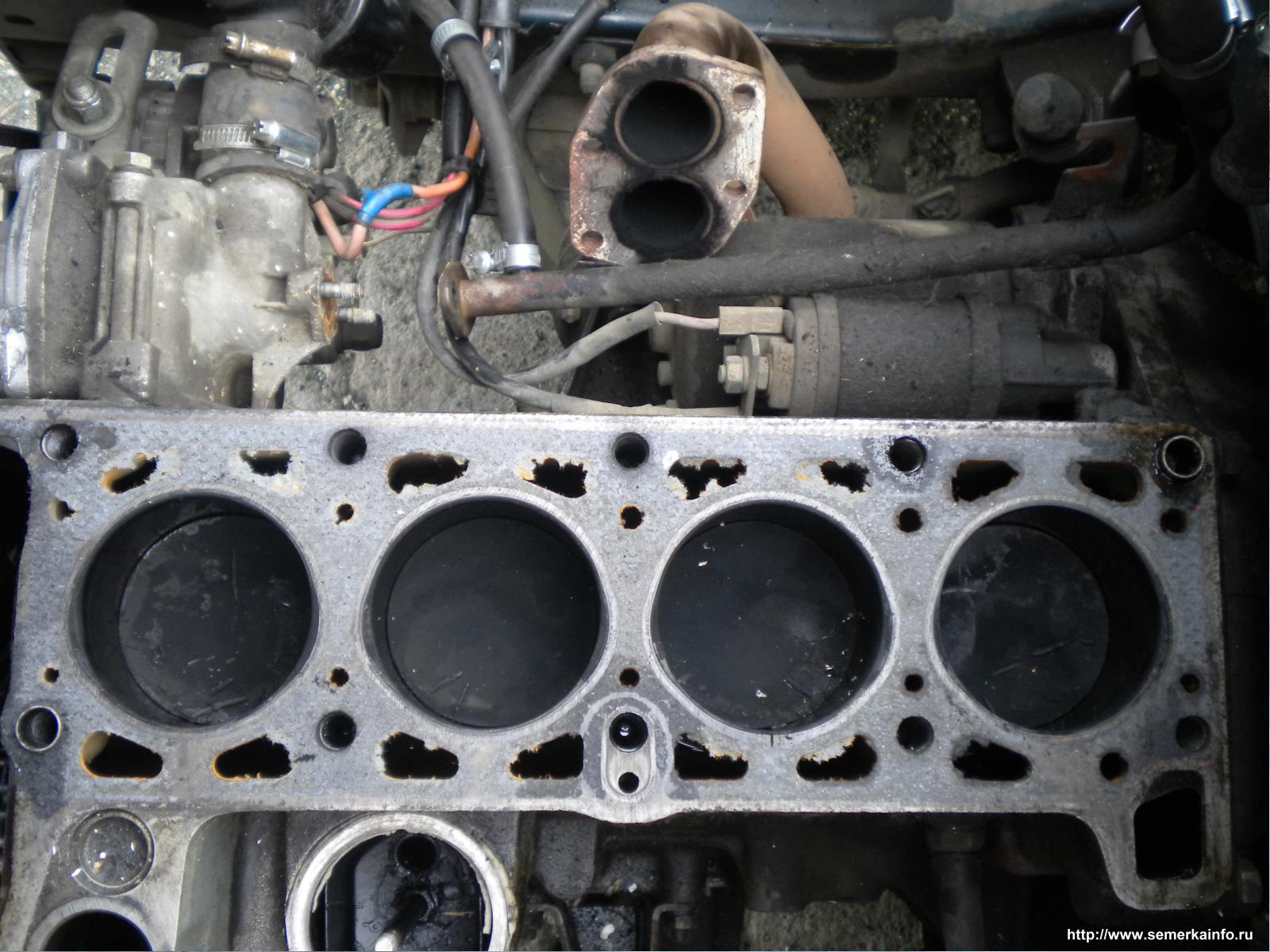 снял головку и увидел какието непонятные нагары на выпускном колекторе(штанах) и в сомих цилиндрах очём это может говорить?