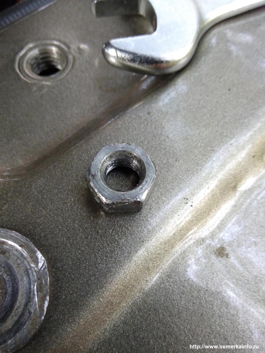 Так же при обратной сборке, закручивая крышку кастрюли, гайка стала прокручиваться. Совет данный Антон80 про кусачки помог. Начал откручивать наискось, туго но пошла. В итоге резьба испорчена как на гайке, так и на шпильке. Ну думаю, что и без этого болта обойдусь, там же 4 защелки есть.