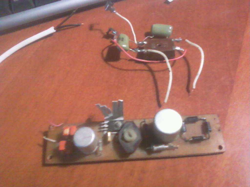 Толик, я питание на модуль беру прямо на плате отдельной- она сразу после транса идёт и раздаёт штук 5 напряжений на другие платы через провода! Вот мерял где какое и соединял, но- на некоторых местах при включении модуля, который тянет 1 ампер напруга падает до 3 вольт и модуль отрубается. На одном выходе работает- но, но только врубаюсь к звуку- преды горят, бо как я писал- на то гнездо с красной чертой- оно выход с маяка по инструкции, Там минус на звук- это минус сразу с блока питания! Вооот. Буду ещё химичить- накуплю сегодня предов десяток. По 2 грн!