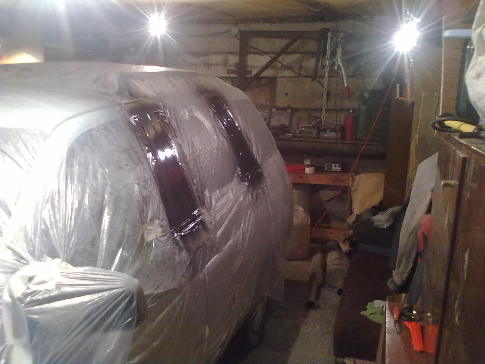 Ну и решил всё-таки покрасить.Замотал всё плёнкой . Слегка за матовал наждачной бумагой Р360 ( с водой) . И покрасил. Красил в пять подходов, с промежуточной сушкой в 15 минут(ходил отгонял комаров от краски,они так и наровились в неё влипнуть) . После не снимая скотча и плёнки оставил на ночь сохнуть. На следующий день снял плёнку. Ну и ветровики заодно прилепил ( дешёвые за 250 рэ., только такие у нас нашёл).