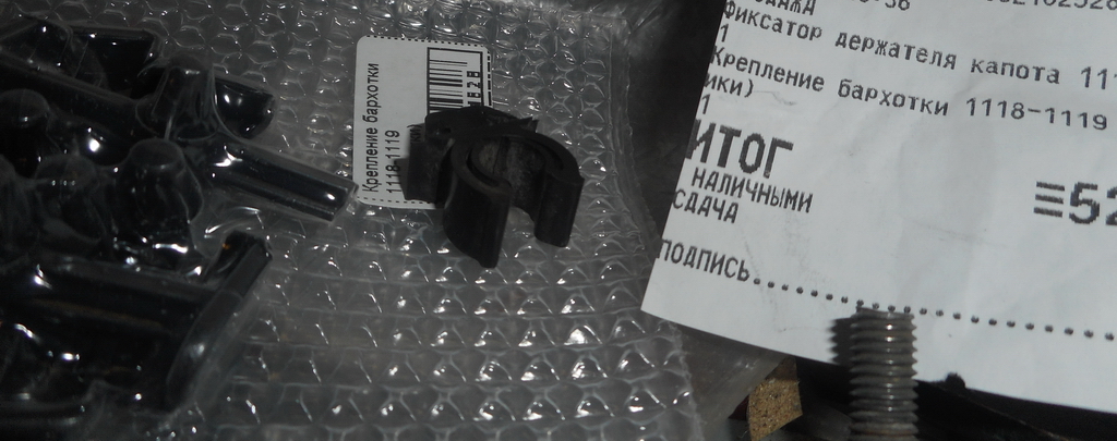 Купил фиксатор упора капота и крепления уплотнителей стёкол дверей, один из которых оторвали на мойке. Крепления уплотнителей и капота «зафиксировал» суперклеем. Заглушку дворника, сорванную на мойке я снять не смог, а его замок приклеил.