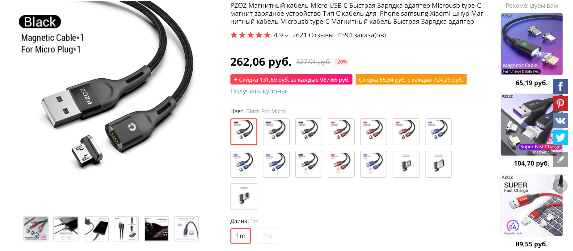 Я отказался от магнитных кабелей, мне как то... Хорошая штука, но в моём случае, если телефон где-то рядом с железной стружкой, чего у меня переодически бывает то это жесть(фиг выковыряешь эту пыль), да и контакт переодически отходит, был ещё какой то критичный нюанс, но я не помню уже. Кабеля брал по 250 за штуку, несколько комплектов.