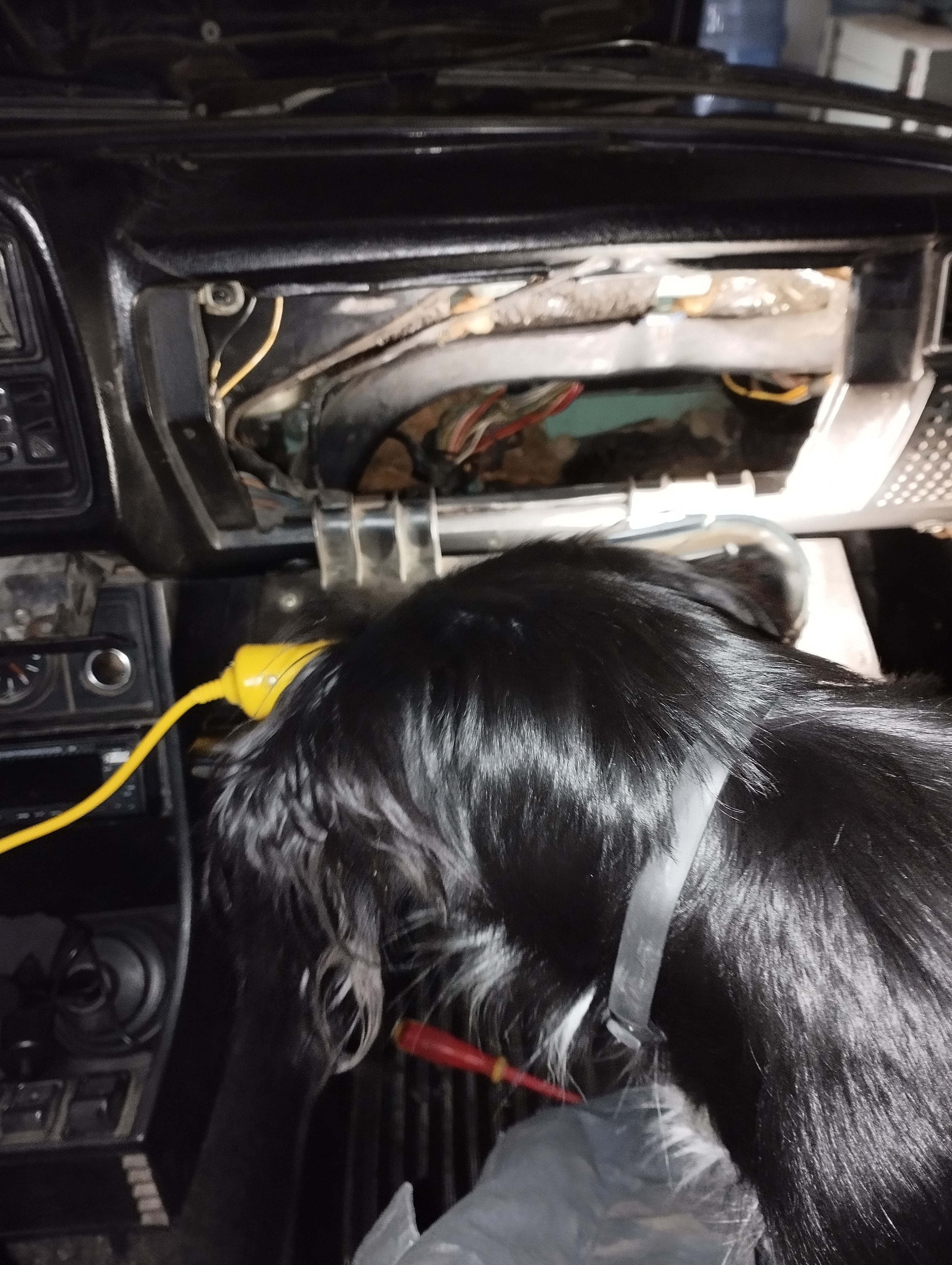 С этой кучей проводов чуть не запутался... Но, при подключении АКБ ничего не коротнуло, и слава Богу. Единственное что, попробовал включить моторчик печки - никакой реакции. Я когда разбирал, то под кожухом болтался вот этот провод. Я его не рассоединял и куда он должен идти - хз. Так и оставил когда собрал. В итоге, ожидаемо, вентилятор не включается, хотя раньше работал. Думал, может с самого выключателя выпал, но нет, там все на месте. Пойду опять снимать бороду и кожух, искать, куда его воткнуть...