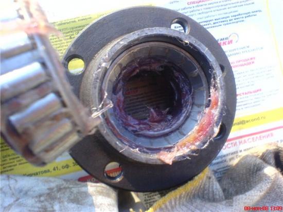 Набиваем внутренне пространство смазкой (я использовал Литол-24), вставляем распорное кольцо, запресовываем сальник, не забыв перед установкой смазать рабочую кромку, и ставим все это хозяйство на место.