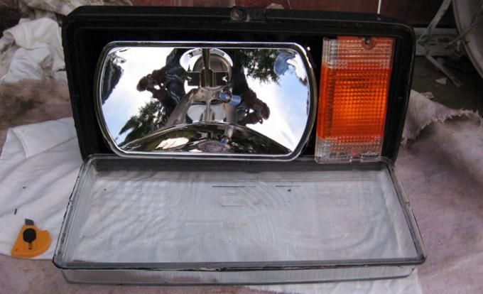 Итак, по итогу мы приводим фар к такому виду, предварительно вычистив все ошметки изнутри корпуса, самое главное это не оставить следов своей работы на отражателе, он должен блестеть как у кота соответствующие органы. Обезжириваем все прилегающие поверхности растворителем, внимательно проверяем не осталось ли наших отчепятков на внутренней стороне стекла фары, ибо после установки стекла на место устранить ляпсусы будет невозможно. Итак вот как выглядит наша фара перед моментом установки стекла на место: