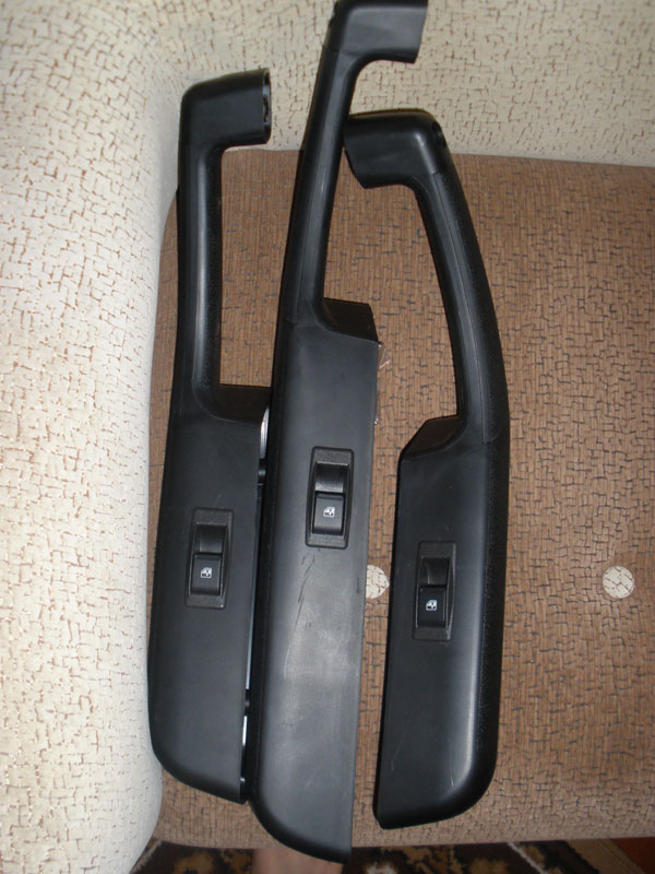 Пока что куплены пластмассовые подлокотники, пассажирские кнопки и блок водителя от калины.