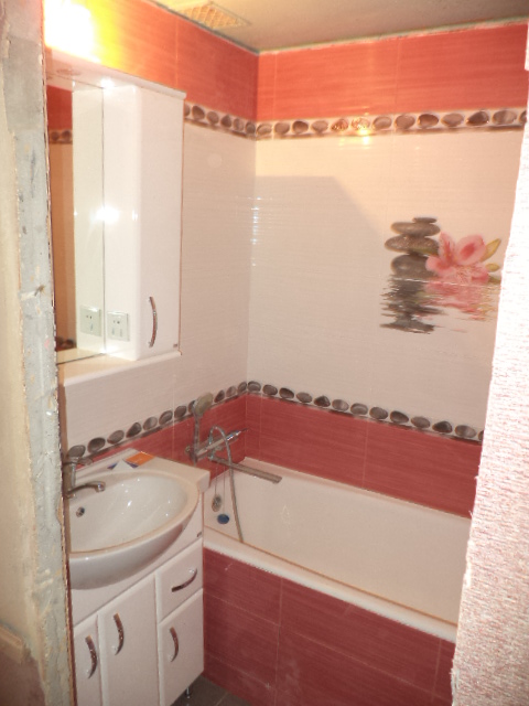 Закончили сегодня у меня санузел. Дверей пока нет, потолка в ванной тоже, и светильника в туалете.