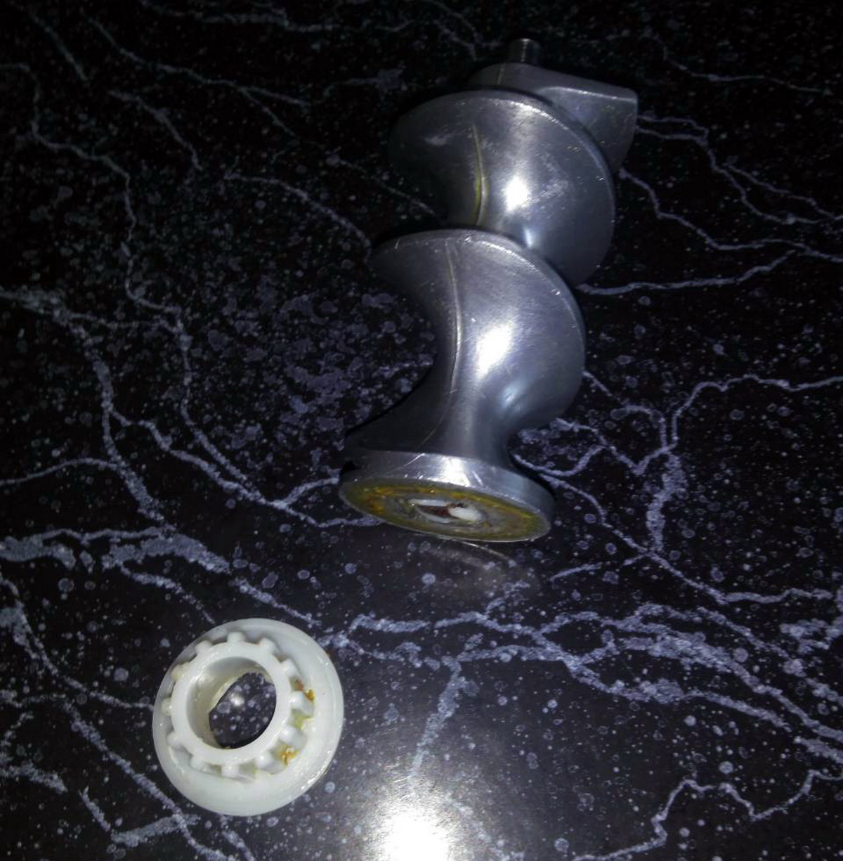 Никто не сталкивался с электромясорубками? Жена вот такой снимок прислала, сдается мне, что эта белая штучка на клею сидела...