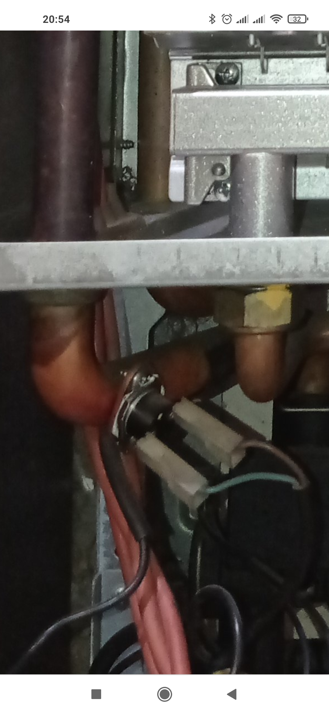 Вот на патрубке. Это на 200 мм ниже теплообменника. а наверху токо датчик ntc . А они бывпет глючат. Если он-не словит рост температуры, то внизу датсик перегрева фиг отключит. Если вдруг насос стал!