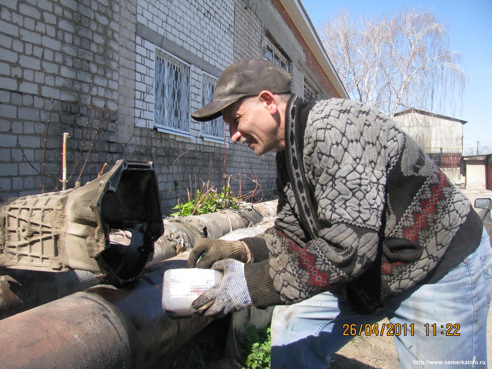 Снимать коробку мне помогал приятель, приехавший на своей машине по случаю отсутствия работы в этот день. Сняли мы с ним коробку, оттащили и положили на трубы теплотрассы, проходящей напротив гаражей. Ну, для удобства, чтобы не на корточках там бензинчиком и кисточкой всё промыть. См. фото.