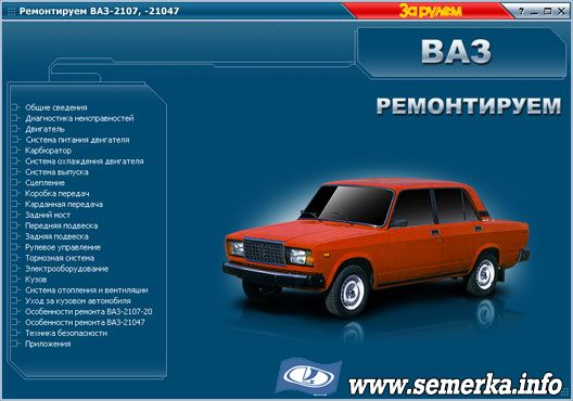 Портированная для Android версия программы "Ремонтируем ВАЗ 2107, 21074" от "За рулем" размер 47,9Мбт. В программе не работает электронная "Схема электрооборудования ВАЗ 2107". Версия Android 4.0+
