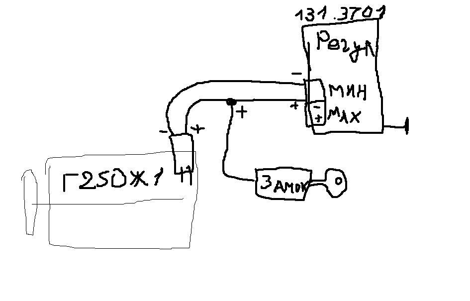 Если можно, то как ? регулятор 131.3701. На данный момент у меня подключено так - рисунок. А на Г221 там одна щётка идёт на массу, а вторая питается от Реле регулятора. На реле приходит напруга от замка....zombie177rus писал(а):Можно и то, что волговским геной живёт.