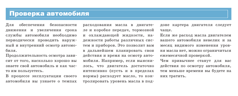 Антон80 писал(а):Если не ошибаюсь, то ежедневно надо и масло, и колеса и еще много чего проверять. Кто это делает?