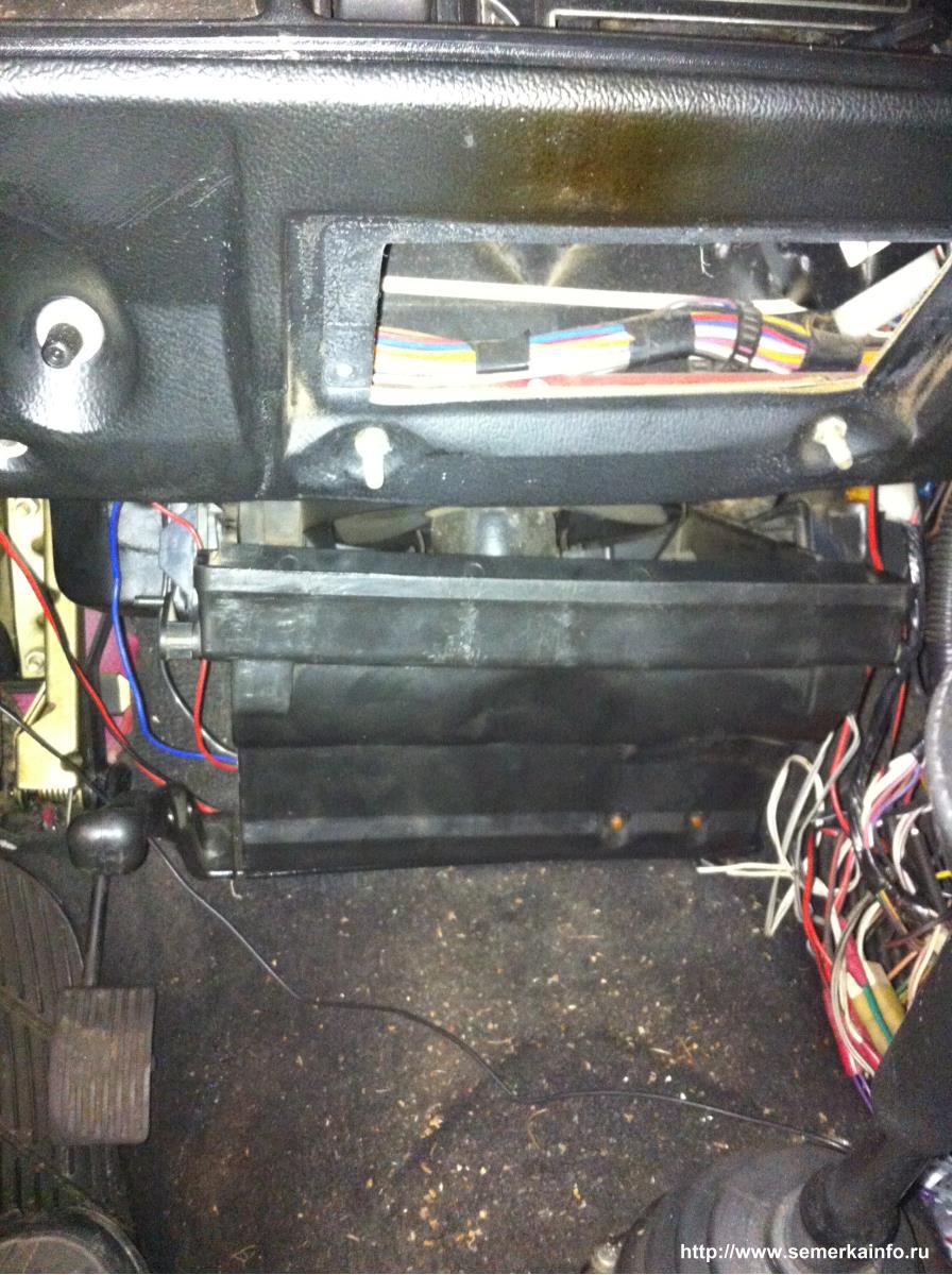 Я снимал нижнюю часть вместе с вентилятором. Там нужно 2 самореза открутить предварительно, они находятся за рукоятками регулировки печки. Вентилятор далеко не выйдет-провода не дадут, просто в сторону его.CT1G писал(а):И за ней думал сразу радиатор будет, а там вентилятор. Не пойму как вытащить радиатор.