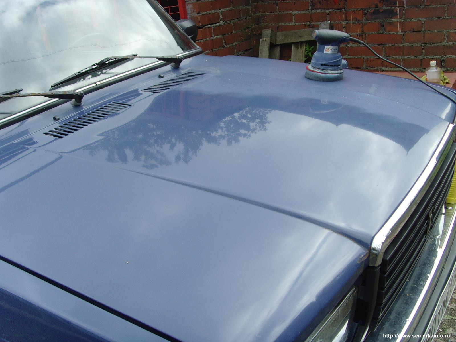 Купил машинку с уже мутной краской,на ней не то что отражений,теней не было.Купил полироль 2 флакончика (500р) полирнул капот,и так заблестел сразу,появились отражения и гладкий стал