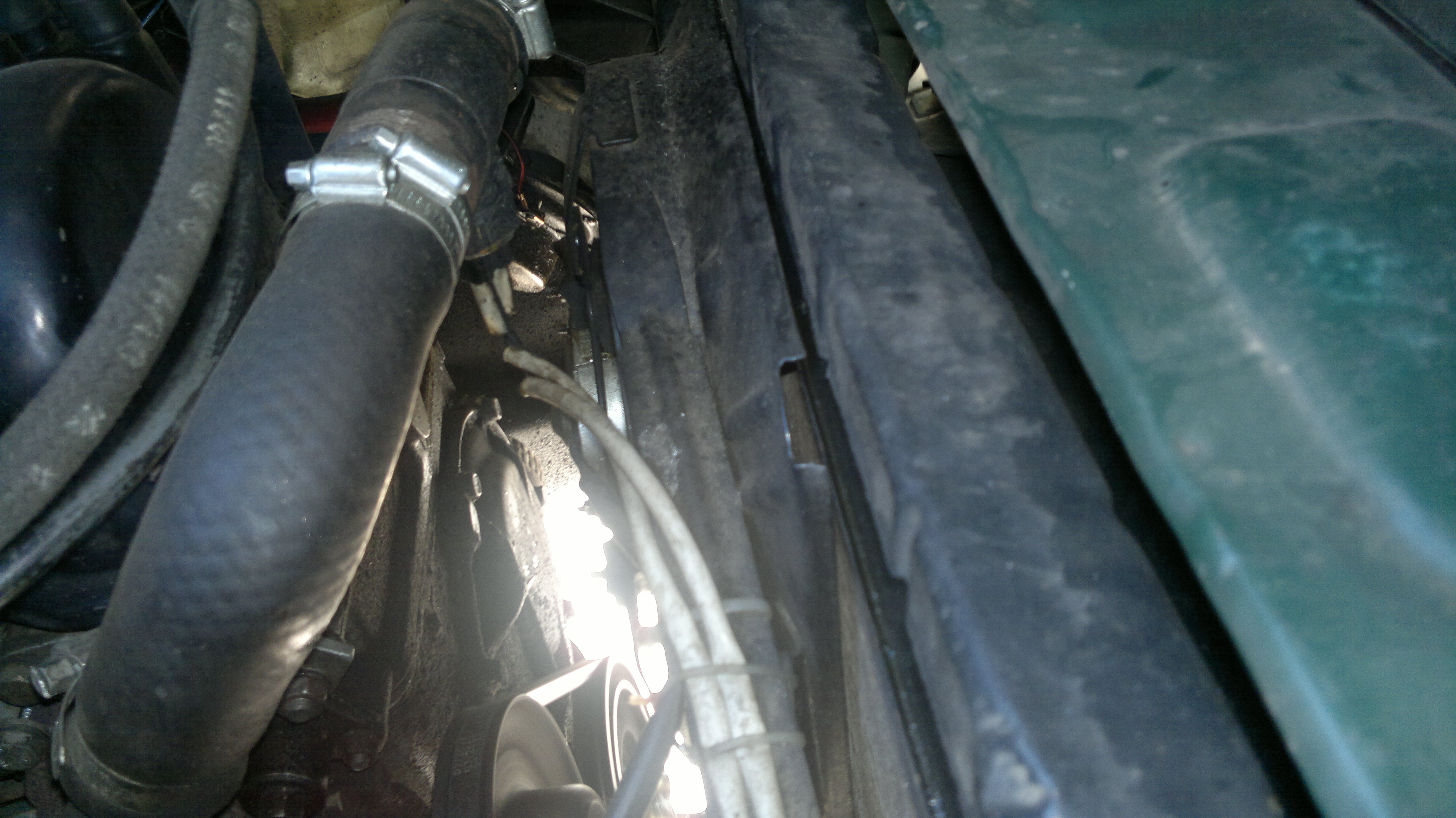 Когда стал осматривать радиатор печки, заметил что одна шпилька крепления немного проржавела, и в месте сопряжения с корпусом имеется небольшая канавка по окружности шпильки. Решил что оттуда возможно давить тосол, и пропаял это место (строительный фен, паяльник, олово и кислота): Теперь на очереди установка эл.вентилятора СО на радиатор с врезкой датчика в нижний патрубок, т.к. на алюминиевом радиаторе отсутствует место установки датчика.