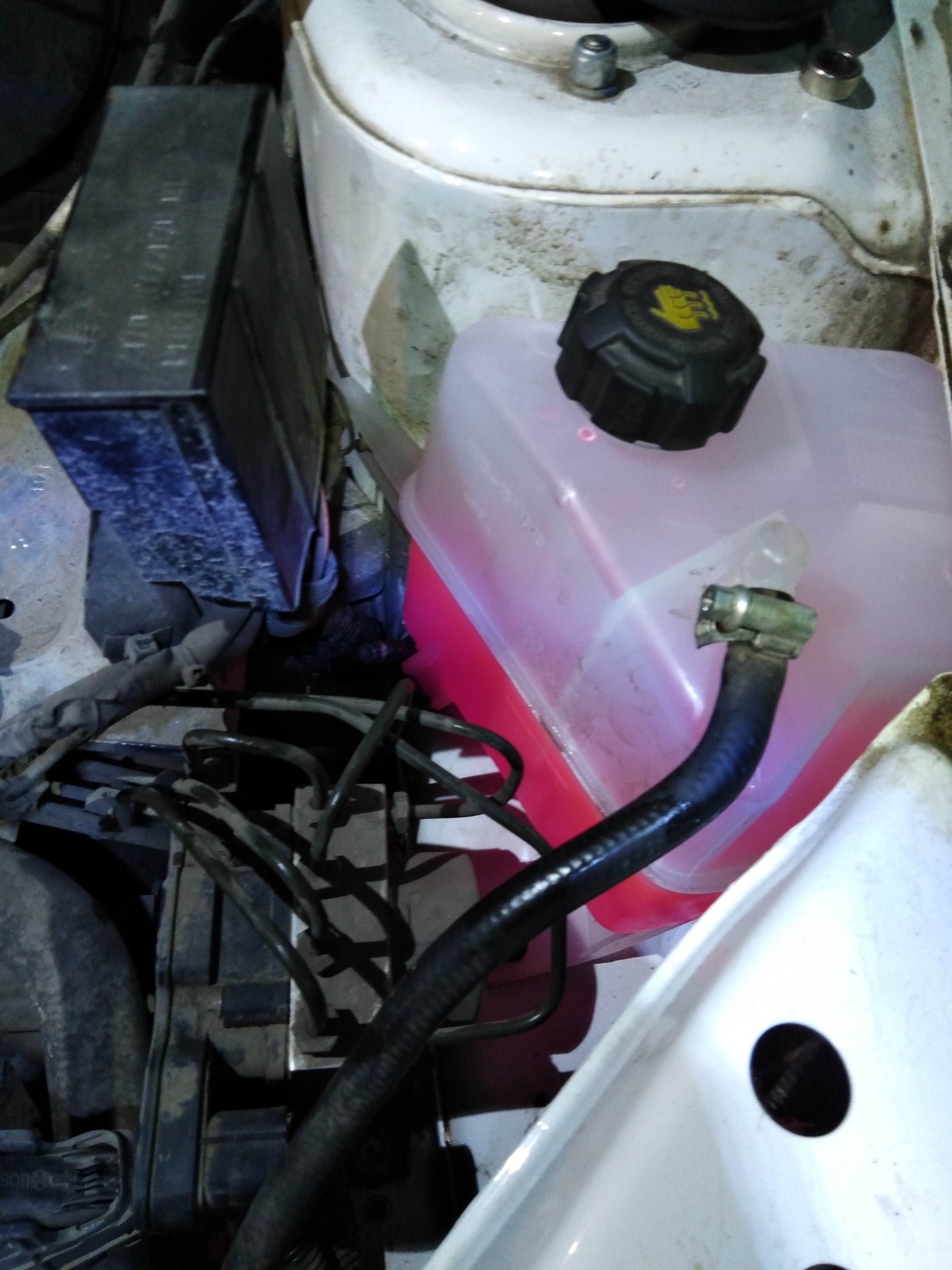 антифриз, придирчивый осмотр выдвинул предположение о трещине в расширительном бачке ОЖ. Был куплен новый, чтобы снять старый нужно: снять акб, открутить площадку акб, снять корпус воздушного фильтра, открутить блок абс, а для этого отстегнуть от него разъём.