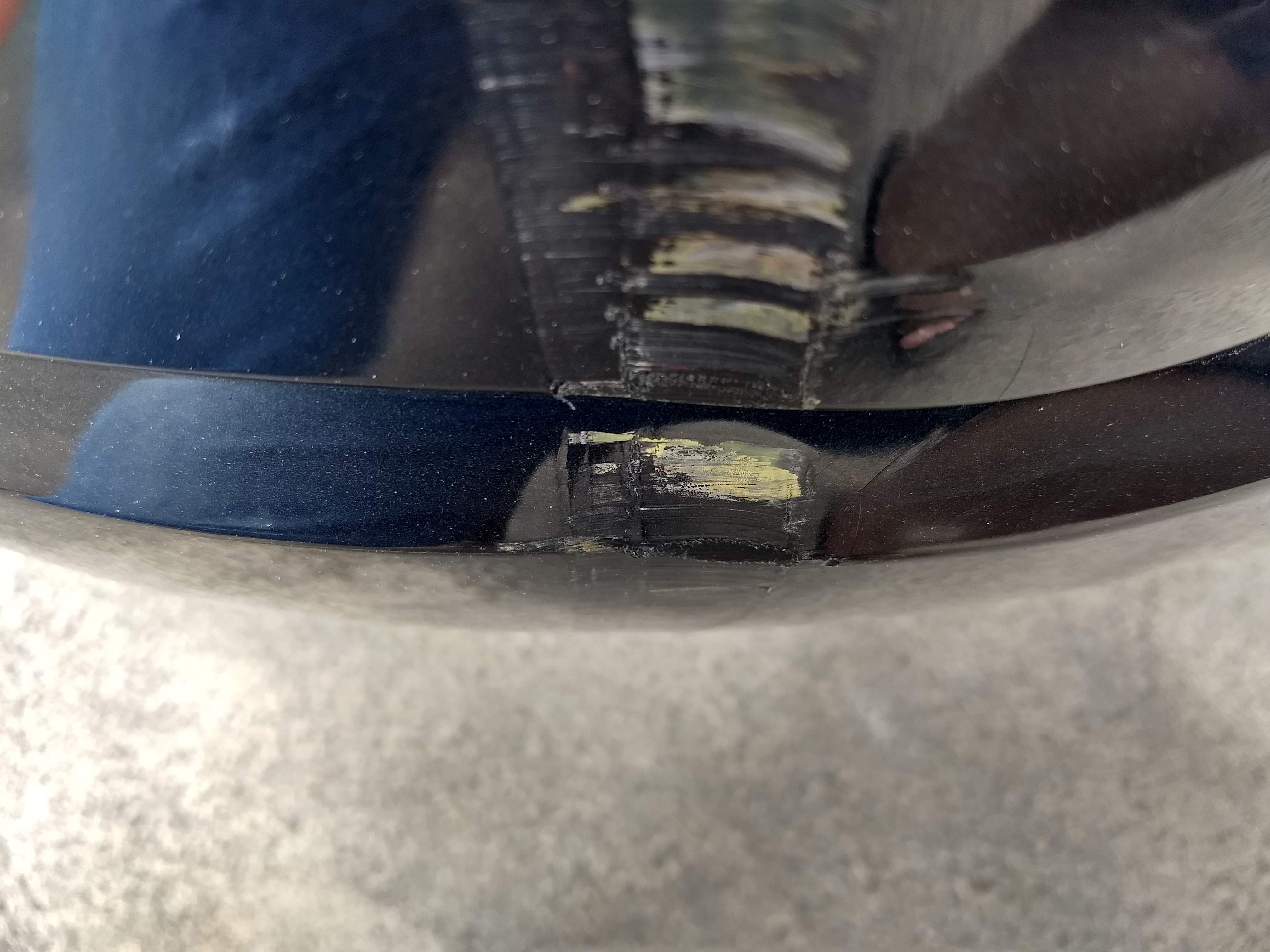 Местами стёрта краска и грунт, в 1 месте пластик на 1.5-2 мм вогнулся, в 1 месте царапины около 2 мм глубиной