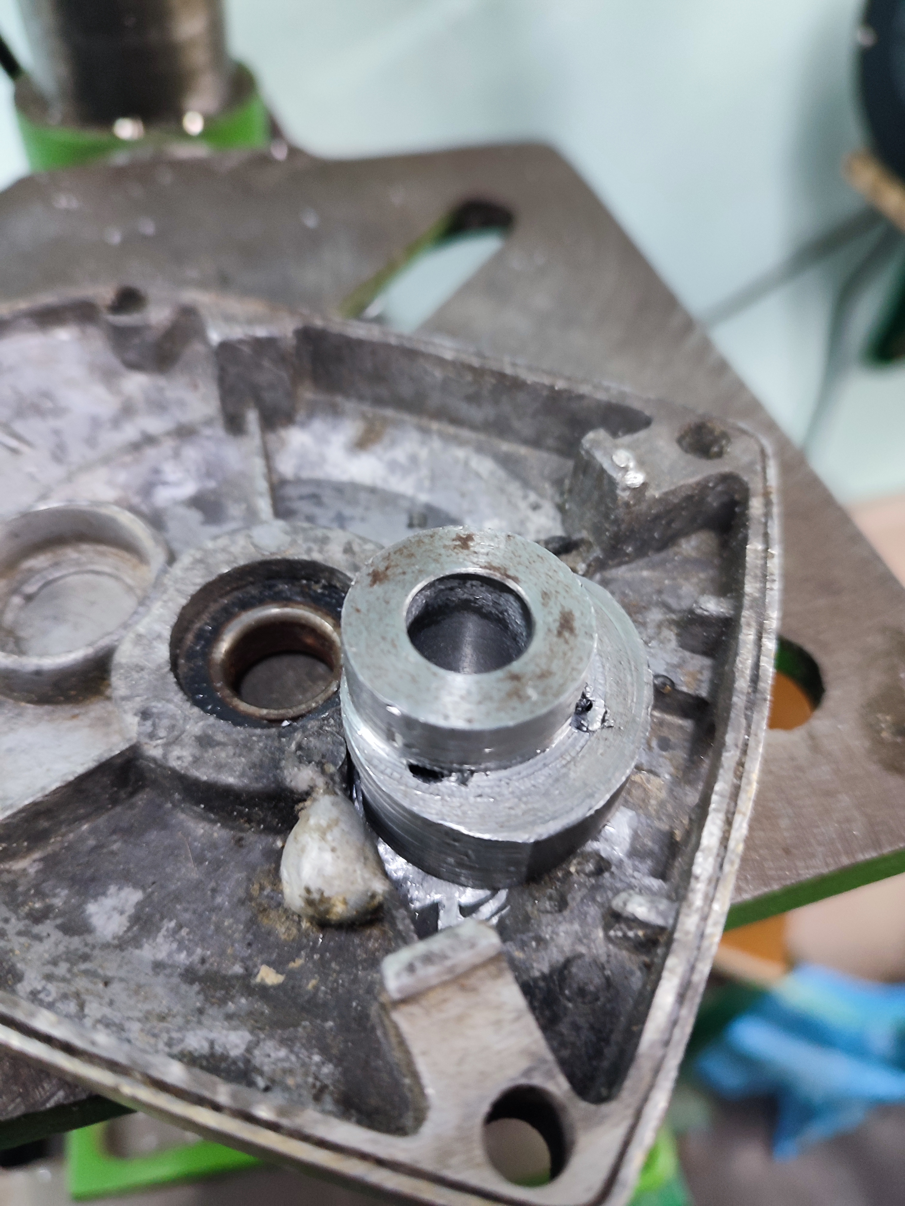 Напишу тут. Лет 15 валялся у меня на чердаке перфоратор бош с серьёзной поломкой. Выломало бобышку в силуминовом редукторе. Попытки приварить не помогали, держит эта бобышка ось привода поршня, усилия там солидные, практически сразу всё швы рвало. Так и лежал он у меня полностью разобранный, как чемодан без ручки. С появлением токарного станка возникли мысли этот аппарат воскресить. Была выточена новая бобышка. Обломок старой сгрыз концевой фрезой на сверлильном станке. Перед этим в крышке просверлил отверстие для дальнейшего базирования новой детали. Закрепил её тремя винтами, для верности и большей жёсткости залил всё эпоксидной смолой. Пришлось пожертвовать режимом вращения без удара, да и не нужен он особо. Остальные функции сохранены. Сегодня состоялся успешный запуск. До кучи обновил щётки и поправил обломившийся шнур.